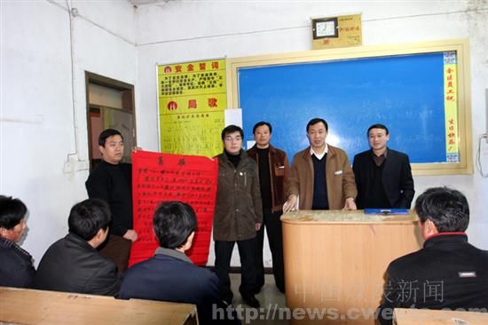 图文:淮北临涣矿矿长把贺信送到采区班前会...