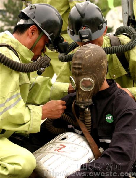 图片新闻 燕子山矿通风区救护队员演练安全...