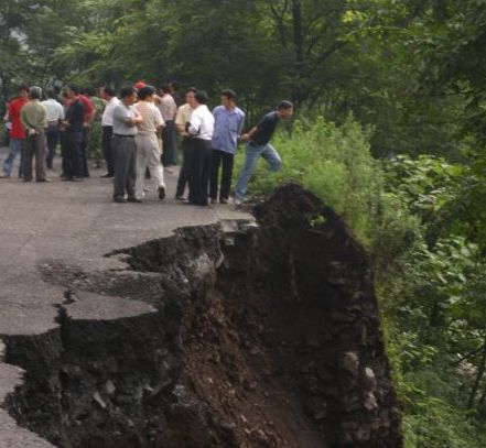 图文:路基突然垮塌,压路机连人带车摔下3...