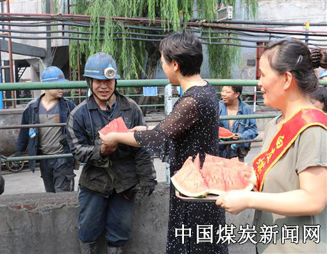 白庄煤矿女工协管员为高温户外作业职工送凉...