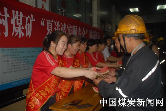 淮北杨柳煤业公司妇女协安员井口送清凉嘱安...