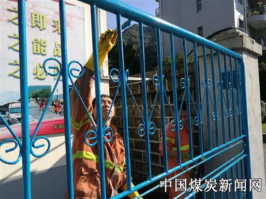 松河公司救护中队队员为救护中队护栏粉刷油...