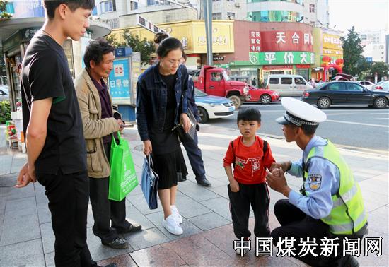 交警将迷路儿童送回家