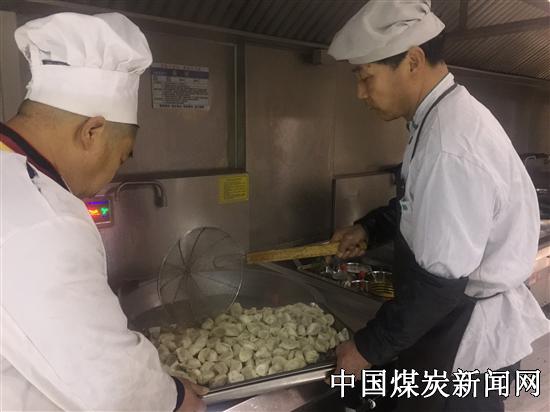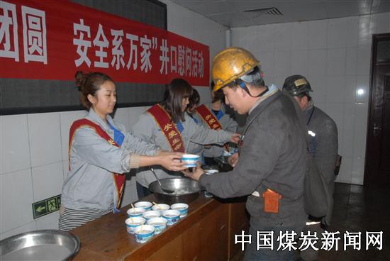 鹤煤九矿女工协管员为入井职工盛汤圆