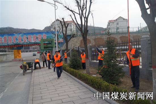 黄陵实业中心区分公司环卫队为矿区绿化带整...