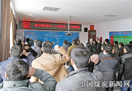潞安集团常村煤矿在岗前仪式中诵读“降本增...