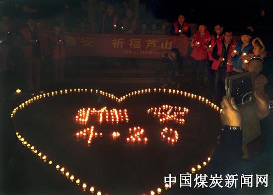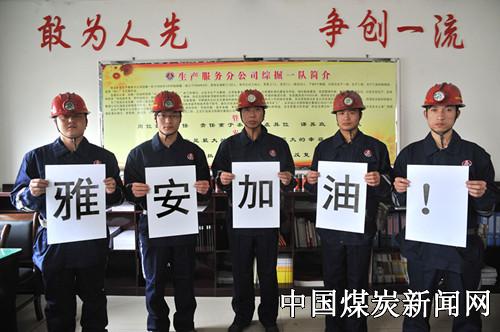煤矿工人为雅安地震祈福