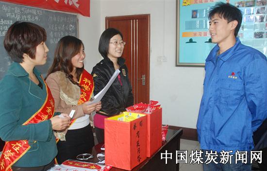 川煤集团达竹公司斌郎煤矿充电女工为矿工擦...
