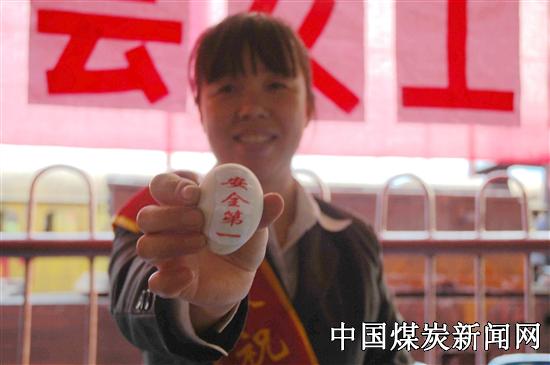 攀煤花山矿:安全警语印鸡蛋上