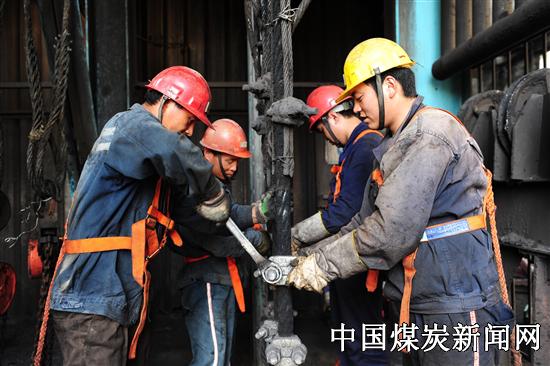 西卓子煤矿为副立井提升吊罐连接装置做探伤...
