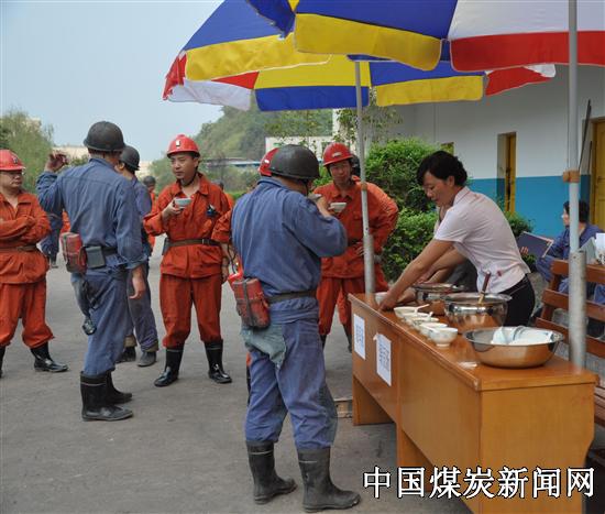 小河嘴煤矿工会防暑饮品送到职工手中