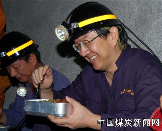 湖南煤业集团总裁覃道雄井下与工人一道吃班...