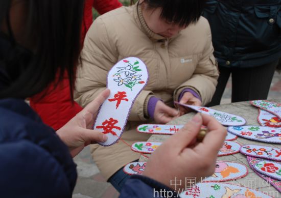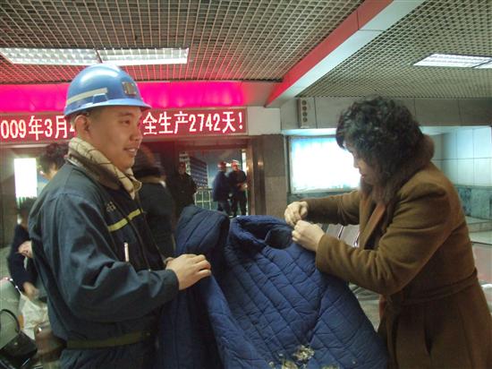 中煤一建63处女工绣鞋垫、发短信嘱平安