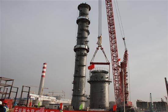 神宁集团煤化工烯烃公司C3塔最后一段吊装组...