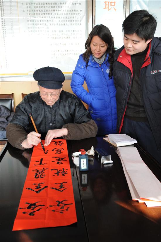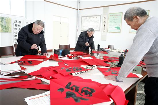 杨村矿老年书法爱好者为一线职工“写春联、...