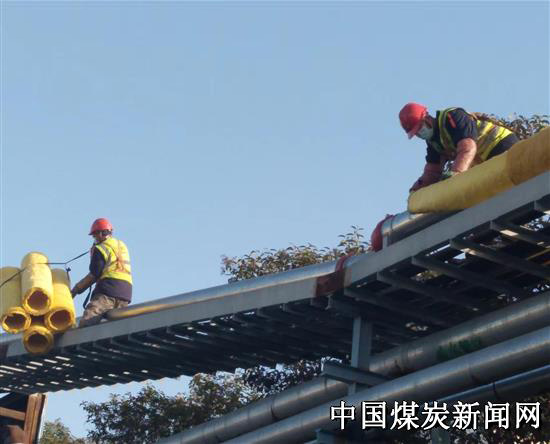 安徽淮北袁店一矿为户外暖气管穿“棉衣”