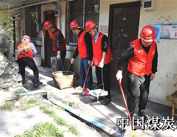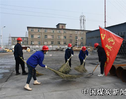 小宝鼎煤矿党员“红帽子”打扫基层单位地面...