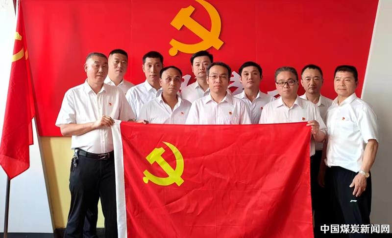 安徽淮北袁店一矿综采二区党员与党旗合...