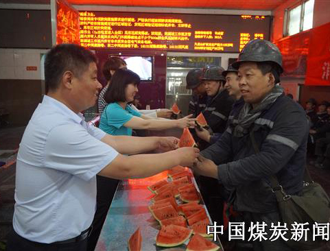 河南能源焦煤公司九里山矿井口送西瓜