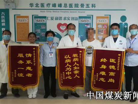 患者家属向联络员展三面锦旗表“谢意”...