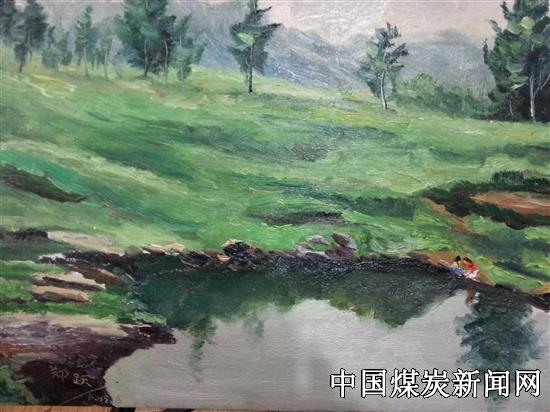 郑 跃:池塘边的故事(油画)