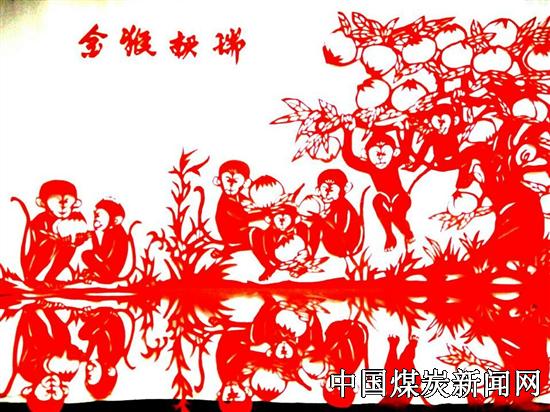 李红波:金猴献瑞(迎春剪纸)
