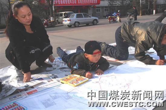当天,来自阳煤集团五矿各小学和幼儿院的100多名孩子,参加了画安全活动,天真活泼的孩子们,思路开阔,想象丰富,尽能画出井下的液压支架、煤溜皮带、电器设备、瓦斯仪器等,名叫郝振宇的小孩,才4岁就画出了井下工作面的画面,拿不稳笔的小手,一笔一画地写上了“不标准不生产,先安全后生产”的大字。观看的叔叔、阿姨们都为之敬佩,把希望的目光对准了他的安全画。