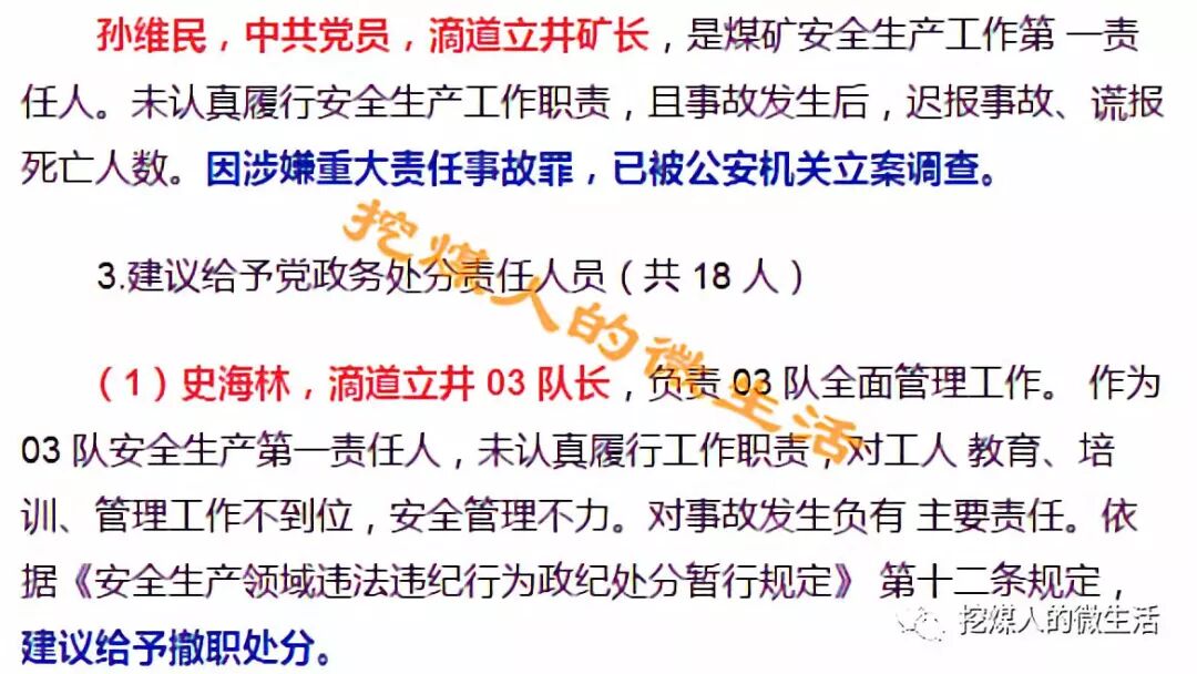 (一)对滴道立井有关责任人员的处理建议(22 人)