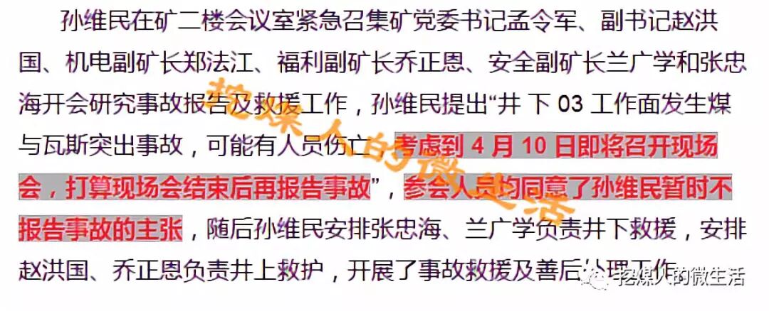 4 月 5 日 15 时许,孙维民到哈南分局谎报“4 月 4 日 10 时 50 分,滴道立井 03 工作面在打钻时发生一起煤与瓦斯突出事故, 造成 5 人受伤”。哈南分局随即派员到该矿调查了解有关情况, 该矿相关人员故意隐瞒事故真相,没有如实反映事故情况。