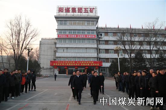 【本网讯】新年伊始,万象更新,2019年第一天,山西阳煤集团五矿在机关办公楼前举行升国旗仪式,矿长宁斌携班子成员与干部职工参加升旗仪式。共同表达对伟大祖国的热爱,对振兴阳煤的忠诚,对发展五矿的责任担当。