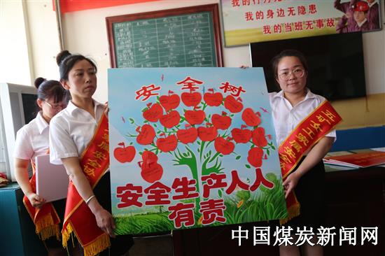 丰富多彩的安全宣教,让职工心里感到开心舒服。女工家属协管安全员还热情邀请矿工师傅们在“苹”安卡上写下“苹”安寄语和安全承诺,将写有寄语的“苹安果”粘贴在“安全树”上,采煤二队队干将“安全生产、人人有责” 的标语贴在“树干”上,干部职工齐心协力浇灌安全之树。“上班要注意安全”“千万别违章啊”“亲人在家里等你平安回家”……一句句暖心的话语,浸透着对职工的安全嘱托,现场气氛瞬间被这一幕幕感人的画面推向高潮,让队组职工将“时刻牢记安全”烙在了心上、刻进了骨髓。