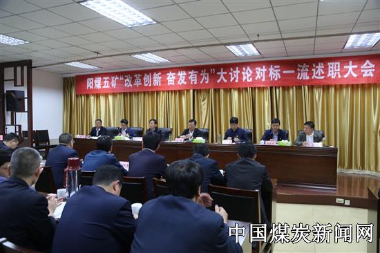 【本网讯】5月15日,阳煤集团五矿召开“改革创新、奋发有为”大讨论对标一流述职大会。按照大讨论要求,紧扣“六个破除”“六个着力”“六个坚持”,坚持把自己摆进去、把职责摆进去、把工作摆进去,对标一流,将2018年工作开展情况、廉洁自律情况、工作取得的成绩与存在的不足和2019年工作进行了述职汇报。
