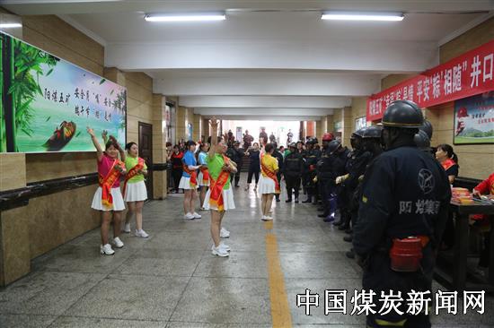 翘首等待—女工家属协管安全员早早地将亲手制作的“平安粽”、“平安绳”和香包带到井口,慰问活动随即展开。“真不错!今年的端午慰问活动不仅送了‘平安粽’,还在‘安全生产月’给矿工兄弟们送来了一份实实在在的‘安全’——连同‘平安粽’一同递到矿工兄弟们手中的是《阳煤五矿反‘三违’漫画册》,感谢矿嫂们送来的端午节‘安全大礼包’”。矿工孙军社绘声绘色地说道。