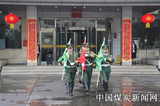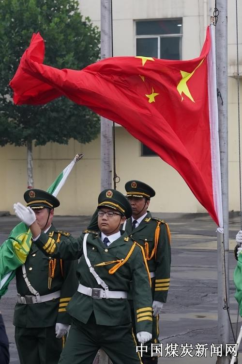 8时30分整,武保升旗手迈着矫健的步伐走向升旗台,鲜艳的五星红旗和在庄严雄壮的中华人民共和国歌声中冉冉升起,随风飘扬。在铿锵有力的歌颂祖国的歌声中升起了阳煤集团标志旗。全体人员行注目礼,那一刻,自豪和激动写在每一个人的脸上。