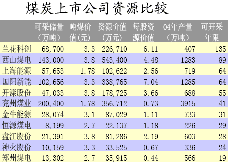 06年煤炭股投资价值分析(附表) | ||||||