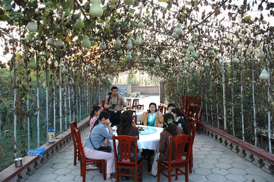 作者系太原矿山机器集团公司宣传部 玩够了旅游胜地,人们便把目光投向了“农家乐”采摘活动。 坐在清徐县的一户农家小院里,俺们好不惬意 葫芦硕大无比 黑提胜似玛瑙 苹果傲然枝头 丝瓜让人惊叹 脆枣含羞迎客 葡萄如珠似玉 红枣压弯枝头 采摘喜笑颜开 夕阳无限爱意 饭菜别样可口