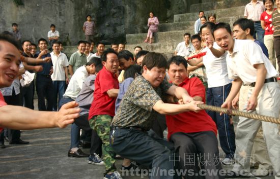 “一二!加油!一二!加油!”10月1日上午,重庆逢春煤矿篮球场阵阵助威声响彻矿区,该矿在这里举办展现矿工“力与美”的传统拔河比赛,热热闹闹过国庆。 上午8时30分,来自该矿采煤、掘进、通风、机电、运输、抽放、机关一、二工会等15支代表队齐聚在矿篮球场,进行拔河比赛。各队采取抽签分组、胜出晋级的办法进行比赛。赛场上,参赛队员们个个不甘示弱,团结一心,全队拧成一股绳,憋足一股劲,在场上你来我往,激烈争夺,气氛十分热烈。现场的“啦啦队”更是为各自钟爱的队伍齐声呐喊,加油助威。经过三轮紧张激烈的角逐,抽放队获得第一名,掘进631队和机关二工会代表队分获二、三名。 拔河赛展现了矿工的智慧与力量,增进了友谊,丰富了员工家属的节日文化生活,营造了浓厚的节日氛围。