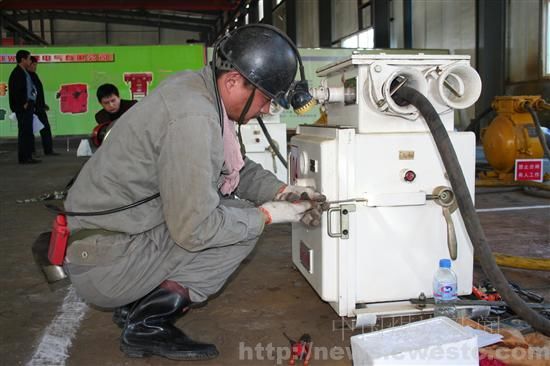 【本网讯】 山东龙口矿业集团有限公司在加大对员工的业务培训与考核的基础上,通过广泛组织开展技能竞赛,不断激发全体员工的创业激情与创业潜能,推动“实强富美”小康矿区建设更好更快地向前发展。日前,该公司组织43名员工参加了烟台市2007年职业技能大赛,经过紧张激烈角逐,该公司的4名选手分别在采煤机司机、综掘机司机、井下电钳和电焊工种的竞赛中拔得头筹。图为员工正在进行井下电钳实际操作竞赛。