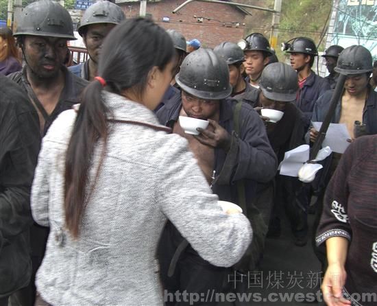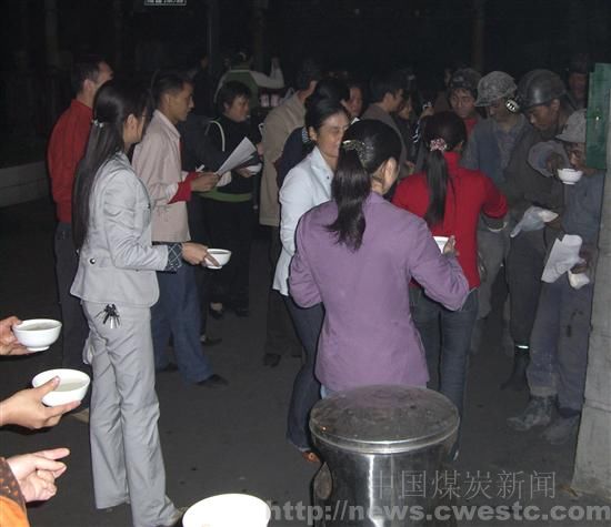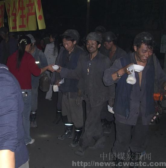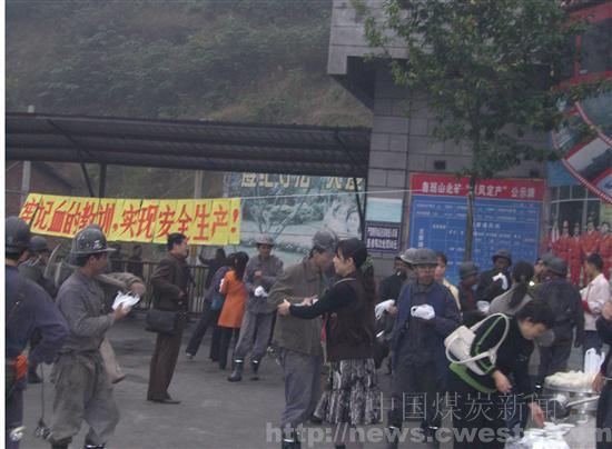 当天早上7时许,川南煤业鲁班山北矿整个人车场及井口旁标语飘扬、人群涌动、气氛热烈。该矿综合部、煤销和供应等部门的办公室人员,有为出入井的职工缝补衣服和钮扣的,也有给他们送上热气腾腾的豆浆和馒头的,还有递上一支支香烟,送上一句句安全嘱咐的。这样的场面,上下井的职工倍感亲切和温暖。 该矿这次活动分早中晚三班进行,参加活动的100余人共为出井和入井的职工发放安全倡议书400余份,馒头600多个,香烟20余包和6桶豆浆。职工们一边吃着热气腾腾的豆浆和馒头,一边认真的阅读安全倡议书,纷纷表示一定要牢记事故教训,不辜负矿党政的殷切希望,在实际工作中时刻注意安全,在工作岗位上脚踏实地的干好自己本职工作,努力搞好今年最后60多天的安全生产工作。整个活动持续到晚上11时30分以后才结束。 图为“送温暖”活动剪影