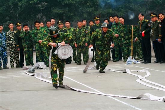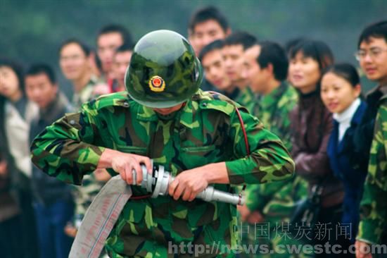 重庆松藻煤电公司日前举行了公司成立以来的第三届义务消防技能比赛,图为现场实景。