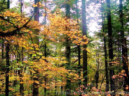 般山地,具有独特的自然景观特色。各景观的各个要素均有一定的差异,并处于十分密切的相互联系,相互依存,相互制约之中,从而构成一个统一的自然综合体。随海拔高度的不同,长白山自下而上可分为四个不同的自然景观带。今年国庆节前夕,有幸到西坡长白山大峡谷领略了美妙梦幻般的红叶奇景。长白山大峡谷又称“锦江大峡谷”,是长白山最为壮丽的一大景观,被誉为“中国的克罗拉多”、 “火山天然熔岩盆景园”。这里的满眼梦幻般的红叶铺天盖地……斑斓的色彩与蓝天、白云、山川、河流构成一幅醉人的金秋画卷。置身其中,仿佛步入仙境,令人心旷神怡。深圳晚报曾经刊载文章赞叹到长白上看红叶有四绝: 一是因它充满原始与古朴的野性韵味,原生态环境保护极好。谷中空气清香怡人,山路狭窄崎岖,泉水清澈透明,还有鸟叫鹿鸣不绝于耳,是一块纯天然无污染的净土,好似“世外桃源”。 二是它面积大,范围广,气势磅礴。整个红叶区以蛟河市庆岭为中心,沿长白山脉绵延百余公里,漫山遍野,疏密相间,跌宕起伏,连绵不休。 三是它叶密片薄,玲珑剔透,层次丰富。放眼整个红叶谷,绚丽得令人陶醉。 四是因其周期最短,更显妙不可言而又不可多得的珍贵。红叶谷地处北纬度较高的深山,每逢秋季,这里昼夜温差加大,降温幅度也大。秋分过后,树叶陆续转红,持续数日便随风飘落。令人为之惜别牵情。 只可惜,本次在长白上西坡只是走马观花,未曾真正完全领略这里的红叶神韵,只采集了“片片红叶”谨供欣赏。