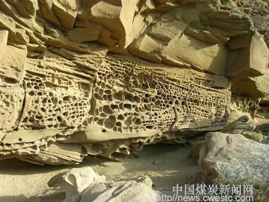 陕西神木位于毛鸟素沙漠边缘,其风蚀是干旱区和半干旱气候条件下所特有的一种侵蚀方式。冬春之际强劲的西北风力作用,加之高凸山顶的沙岩,形成了独特的风蚀现象――多为风蚀残丘、风蚀柱、风蚀壁龛、石蘑菇等。