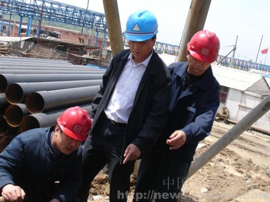 图为管理部领导深入施工现场上岗检查工程安全质量。