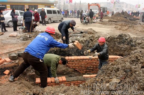 图文:淮北临涣矿实施后勤设施改造     【本网讯】 12月23日,在安徽淮北矿业临涣矿工人村步行街南部十字路口处,挖掘机、排水泵一片轰鸣,该矿工人三村排污工程正在紧张施工中。临涣矿下大力气对职工福利设施进行改造,为职工家属创造一个良好的居住环境,今年,向集团公司争取资金40余万元,解决三村污水排放问题,整个工程横跨三村、经步行街至二村污水泵房,重新敷设水泥管排污管道1000余米。工程于12月1日开始,由临海童建安公司施工,预计元月底竣工。下图施工人员正在连接管道