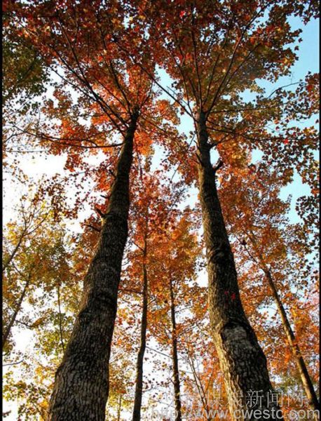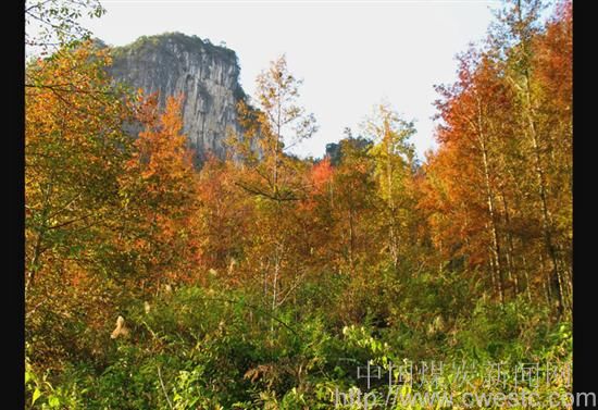 位于云贵高原边缘的广西百色的田阳、德保等县,其独特的地理位置和气候造就了绚丽多彩的枫叶资原,可观赏期是每年的十一、十二月份。每年十一月份,强冷空气一吹到,这里的枫叶便开始由绿变红。远远望去,只见高十几米的枫树,如一束束火炬熊熊地燃烧在村头原野,有一种四射的豪情。而且尽显个性,即使是同一棵树,色彩的成熟度也不同,能看到橘红、紫红、橘黄等色彩不同的枫叶并存,让人叹为止观。在逆光下,红色和黄色的枫叶最亮丽。同一片枫林,同一片属地,有的已红透半边,而有的绿意犹在,丝毫不向霜冻低头。你如果这时候踏入山门,便犹如走进了色彩的海洋,从谷底到谷峰,千叶万树,色彩纷呈,红的娇艳,黄的明丽,绿的柔和,漫山遍野,一树引领,满沟响应,整个山林都跃动起来。一坡坡、一地地,尽是数不尽的彩色,斑斓的色彩与蓝天、白云、山川、河流构成一幅醉人的金秋画卷.....
