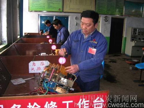 华丰煤矿班组出了个开关土专家     【本网讯】 山东华丰煤矿机电安装部电器维修班班长李建义热衷于技术创新,曾荣获全国煤炭行业“西山煤电杯”职工技能大赛综采维修电工优秀奖。技校毕业的李建义依靠自学成才,通过不断地钻研业务,他先后完成20余个技改项目,创造出经济价值200余万元,他所设计的“QBZ—80真空电磁起动器控制回路”等创新项目都获得成功,收效良好。李建义因此被人们誉为煤矿“开关土专家”。图为李建义在维修真空开关继电器。