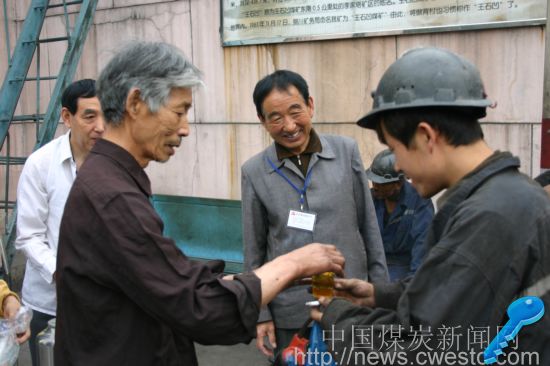 现年已70岁的袁金喜同志,是王石凹煤矿退管科的一名退休工人。也许是老同志在工作岗位上时,工作、生活过于忙碌的缘故,对思想上、行动上和形式上要求政治进步的理解存在偏差,或者缺乏深思熟虑,直到前不久他才郑重其事地向所在部门的党组织递交了加入中国共产党的申请书。期间,他主动参与单位和组织举办的各类活动,积极为企业出谋划策,为社会发挥余热。图为在全国第六个安全宣传教育活动月中,他和退管科党员服务队的老同志一齐到井口为采掘一线上下班的工人送茶水,以表退休同志们的满腔嘱咐。