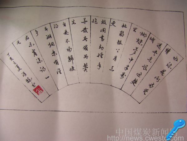 有付出就会有收获。2005年以来,他先后参加了泰山杯全国书画大赛、第二届东坡书画院艺术节书画展、中华名人全国书法、美术作品展、首届米芾(fu)杯全国书画展等全国性比赛,他的钢笔、毛笔和绘画作品屡获一二三等奖和优秀奖,有的还被评为金奖和银奖。2006年,在盘县开展的首届青年艺术节上,他现场挥毫泼墨,一幅钢笔书法获得一等奖。伴随着这些荣誉,他又先后被中国书画家协会、安徽省书法家协会吸收为会员,为他展示自己所钟爱的书画艺术找到了一片新天地。