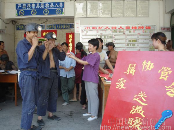 本网讯 广西右江矿务局小龙矿家属协管会在“全国安全生产月”活动中,根据本矿的实际情况,有计划地开展各种送温暖活动,在嘱咐职工做好安全生产的同时,还在井口开展送绿豆粥、冰冷西瓜等,当职工们吃上一片片清凉的西瓜和一口口香凉的绿豆粥时,都表示一定要做好安全生产,做到不违章违纪,为矿井发展多做贡献。图为该矿家属协管会在井口为职工送绿豆粥和西瓜。