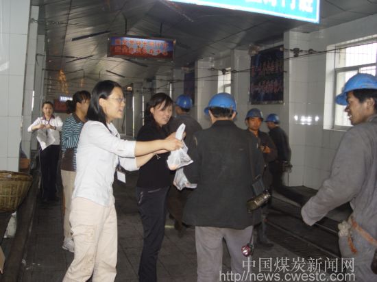象山矿端午节给职工送粽子和鸡蛋     “棕子香香 鸡蛋圆圆 糖茶甜甜 心意暖暖”。农历端午节这天,韩城矿务局象山矿组织女工们在井口候车室给上下井的职工们送上了节日的礼物--棕子和鸡蛋,同时叮嘱他们注意安全,保护环境,不要乱扔垃圾。